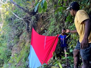 “Masyarakat sangat senang dan bangga bisa pasang bendera besar di gunung. Ini tanda bahwa kita semua satu, kita Merah Putih,” ungkap Ketua Bamuskam Batom, Bernard Wobdana.