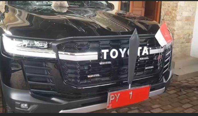 Pantauan lapangan menunjukkan kerusakan paling parah menimpa dua unit kendaraan dinas berpelat merah hitam. Kaca depan pecah dihantam batu berukuran besar, bodi penyok, dan sisa serpihan kaca berserakan di lantai garasi. Batu masih tergeletak di atas kap mobil, menandai brutalnya amukan massa.