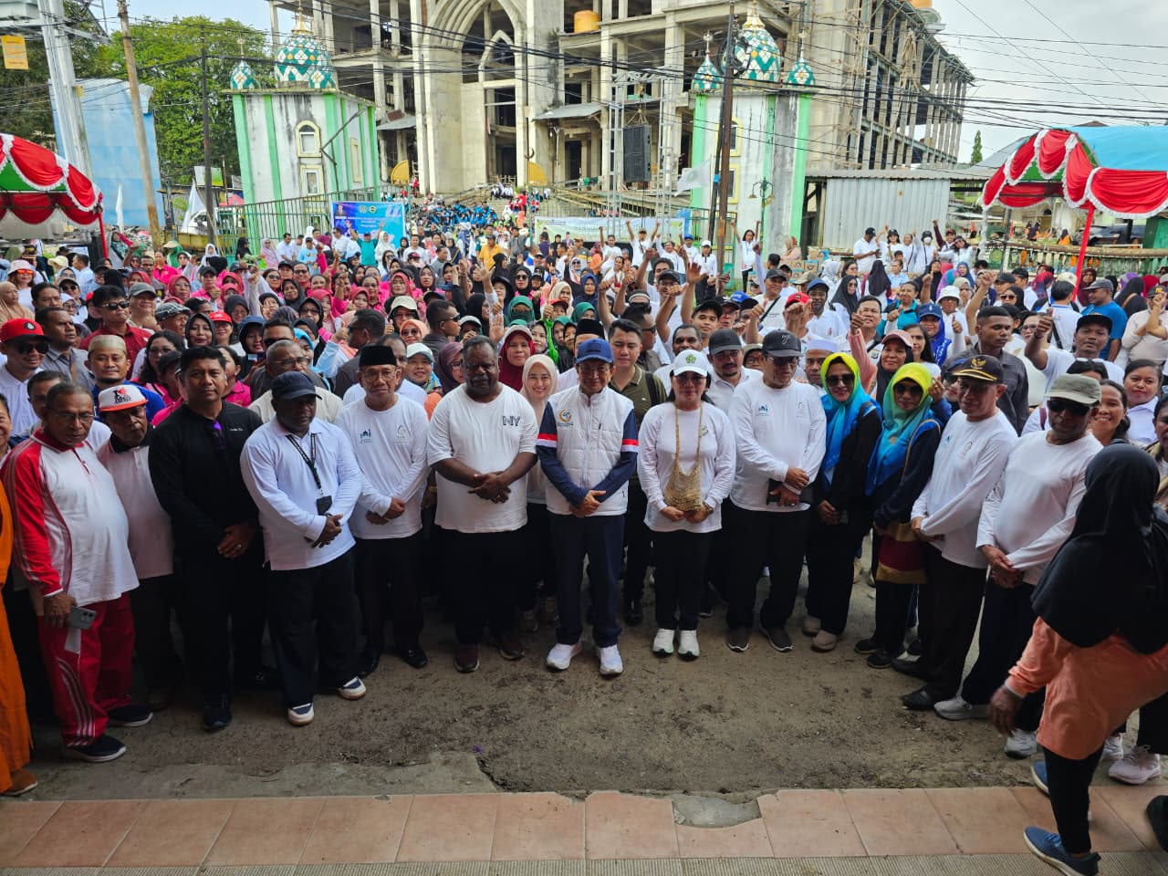 KOTA SORONG – Menteri Agama Prof KH Nasaruddin Umar mengikuti kegiatan jalan sehat kerukunan di Kota Sorong, Provinsi Papua Barat Daya. Kegiatan bertajuk “Merawat Semesta dengan Cinta” itu juga dihadiri unsur pemerintah daerah, masyarakat Kota Sorong, hingga tokoh agama, adat, dan tokoh perempuan.