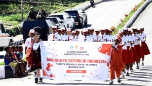 Lomba Gerak Jalan Meriahkan Suasana Menyambut HUT RI ke-80 di Puncak Jaya