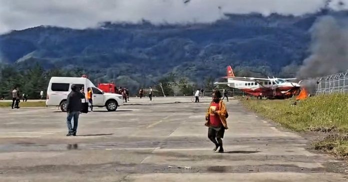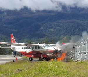 PUNCAK – Sebuah pesawat Grand Caravan milik Pemkab Puncak dengan nomor registrasi PK-PPI terbakar setelah menabrak pagar dan pos jaga Kopasgat di Bandara Aminggaru, Ilaga, Papua Tengah Senin (25/08/2025).