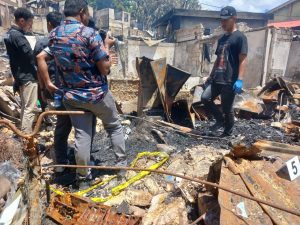 JAYAPURA – Satuan Reserse Kriminal Polresta Jayapura Kota bersama Tim Laboratorium Forensik (Labfor) Polda Papua serta Unit INAFIS melaksanakan olah tempat kejadian perkara (TKP) lanjutan terkait kebakaran yang menghanguskan 26 unit rumah di Kompleks Palopo, Kelurahan Mandala, Distrik Jayapura Utara, Papua.