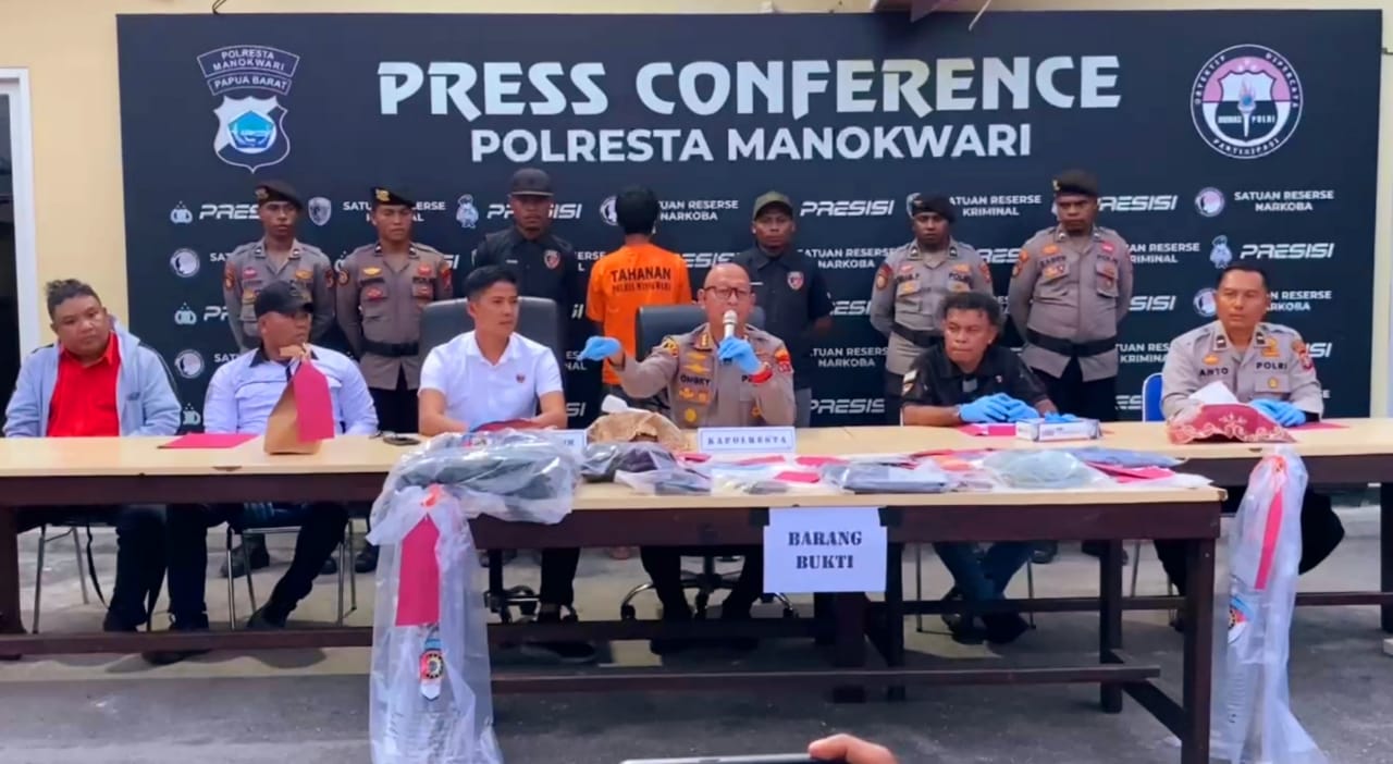 Kapolresta Manokwari Kombes. Pol. Ongky Isgunawan, SIK dalam konferensi pers di Mapolresta Manokwari, Rabu (12/11/2025), memaparkan kronologi lengkap peristiwa yang menggemparkan warga Reremi Puncak.