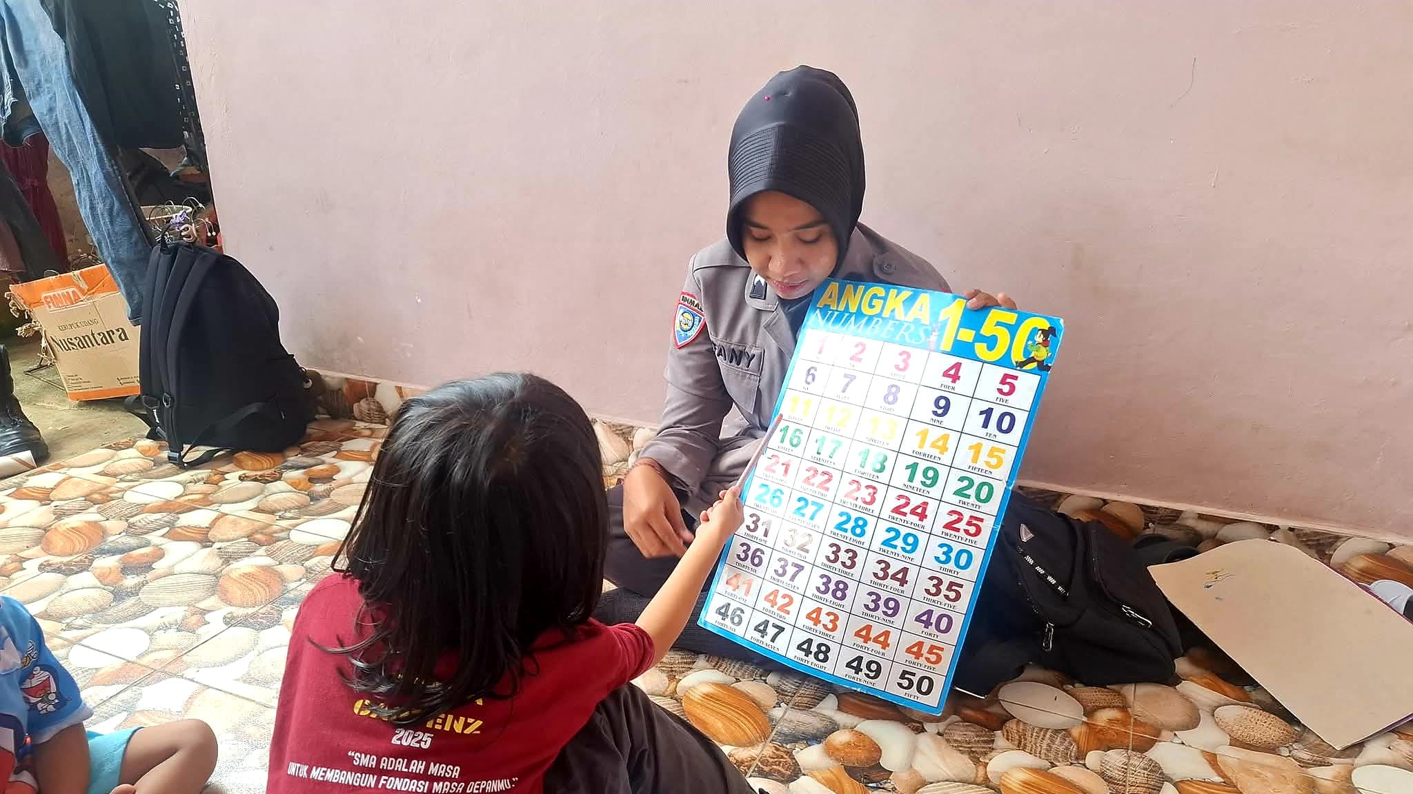 Dalam kegiatan tersebut, para anggota Polresta memberikan materi dasar seperti membaca, menulis, dan berhitung, yang diberikan secara bertahap dan terstruktur.
