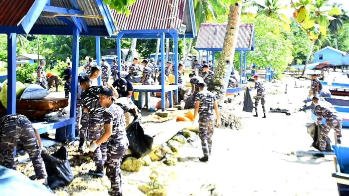 BIAK NUMFOR – Satuan Tugas Operasi Trisila 2025 Komando Armada III Sorong melaksanakan kegiatan bersih-bersih pantai di kawasan Pantai Samber, Kabupaten Biak Numfor, Papua. Kegiatan ini sebagai wujud nyata kepedulian terhadap lingkungan sekaligus komitmen menjaga kelestarian ekosistem pesisir.