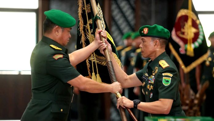 JAKARTA – Tongkat estafet kepemimpinan di tubuh Kodam – XVIII/Kasuari resmi berganti. Pendam – XVIII pada Selasa (08/09/2025) menyampaikan bahwa Upacara Serah Terima Jabatan (Sertijab) Pangdam – XVIII/Kasuari berlangsung di Aula A.H. Nasution, Mabesad, Jakarta, Senin (8/9/2025) dan dipimpin Kepala Staf Angkatan Darat, Jenderal. TNI. Maruli Simanjuntak.