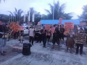 “Untuk Menteri Bahlil otak sawit dan Menteri Nusron, stop caplok serta rampas tanah kami. Tanah adat bukan tanah negara. Tanah adat adalah milik masyarakat adat. Masyarakat adat Papua ada, hidup, dan berdaulat atas tanahnya,” seru Simon lagi.