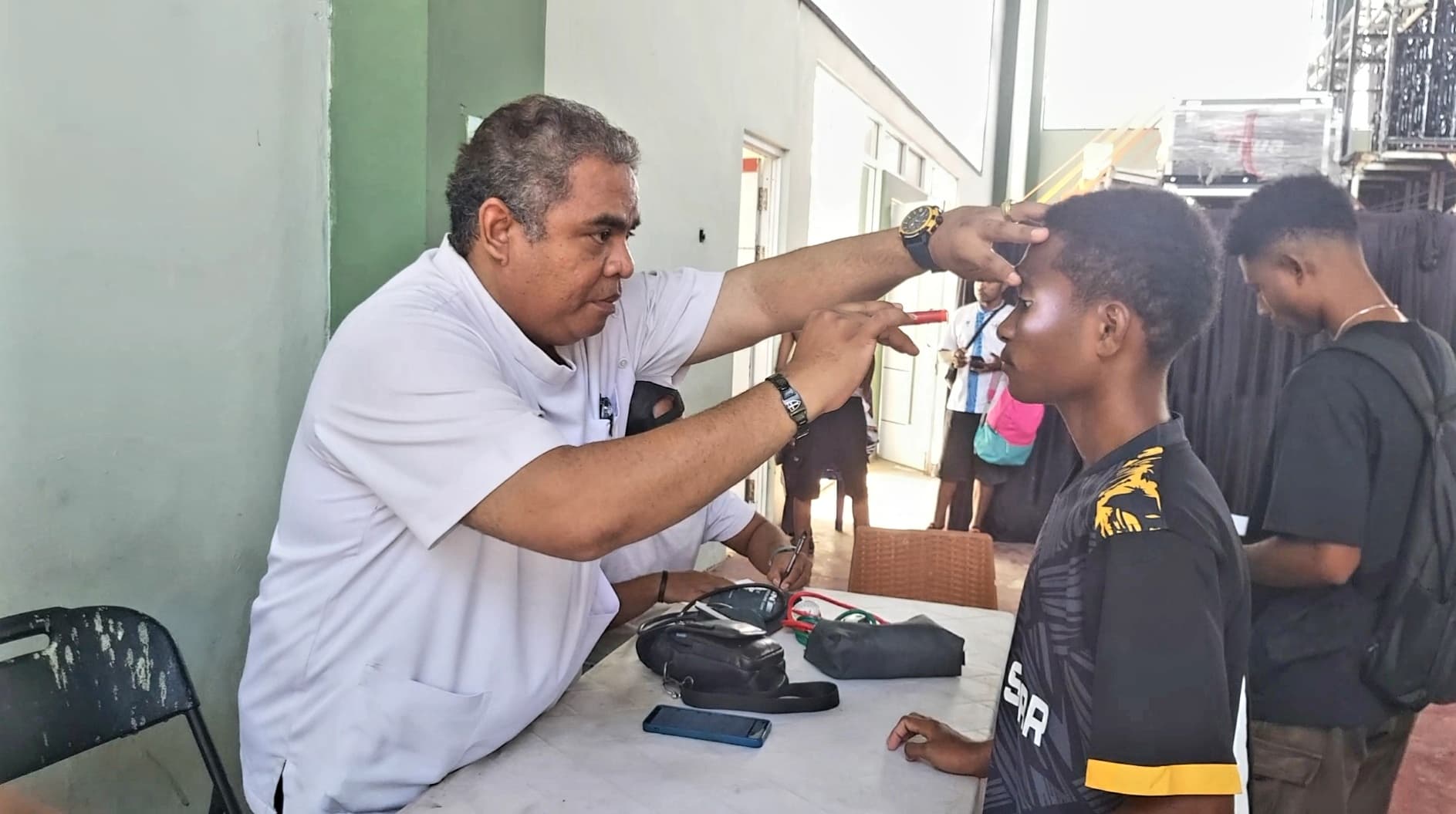 Di sela-sela waktu pemeriksaan kesehatan para atlet di area Gedung Serbaguna Yonif RK – 762/VYS Sorong, Sabtu (28/06/2025), dr. Louis menyebutkan bahwa secara umum kondisi kesehatan para atlet cukup stabil dan layak untuk bertanding.