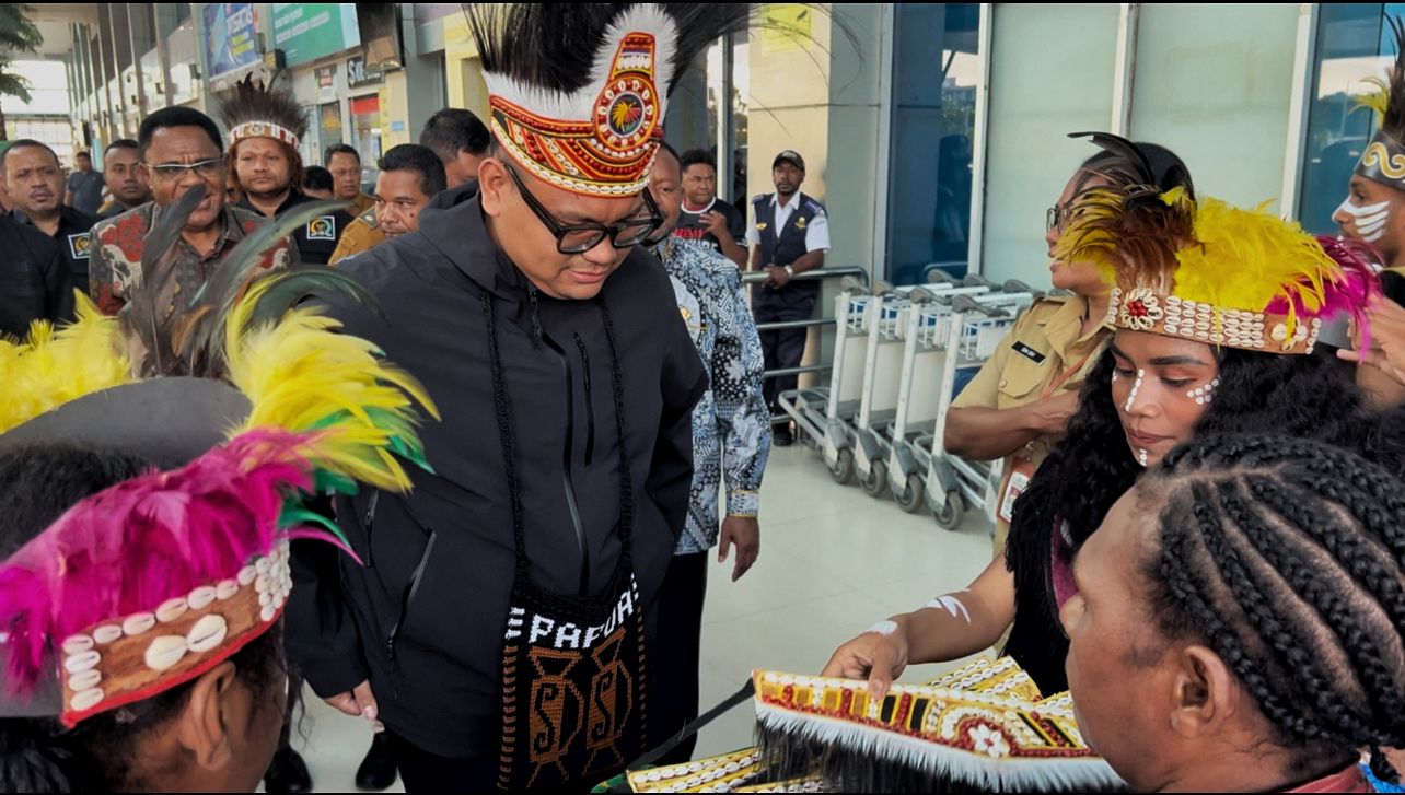 Sebelum mengikuti prosesi adat, rombongan disambut langsung oleh Senator Paul Finsen Mayor (DPD RI Papua Barat Daya), Wakil Gubernur Papua Barat Daya Ahmad Nausrau, dan Wakil Wali Kota Sorong Anshar Karim.